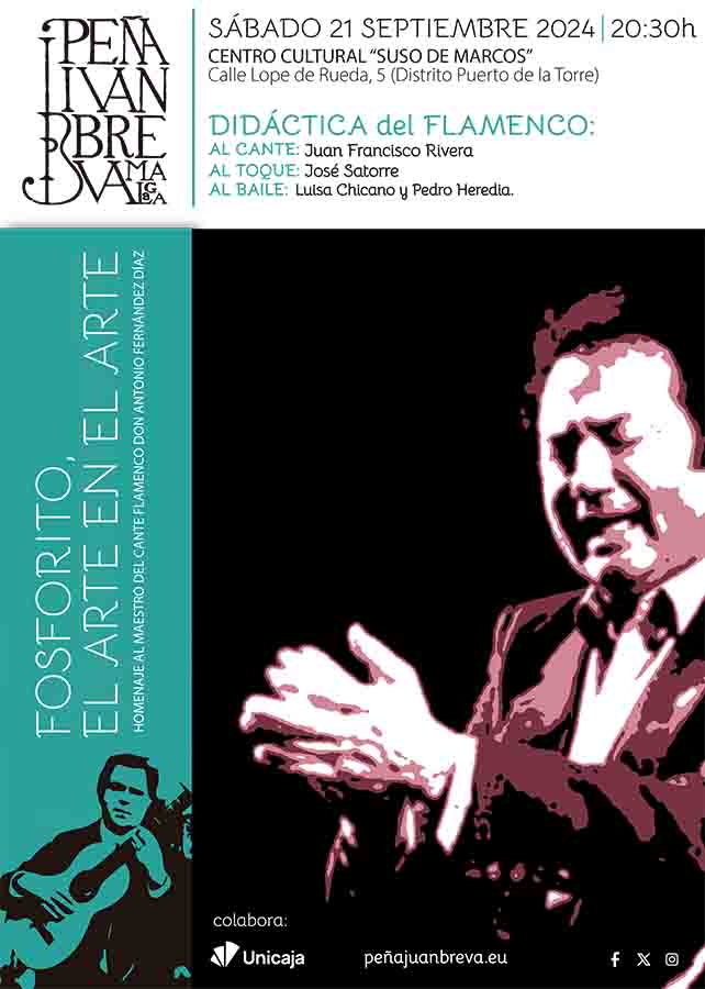 Esta noche, a las 20:30 horas, se celebrará en la Casa Museo Suso de Marcos, situada en la Calle Lope de Rueda, nº 5, en Puerto de la Torre, un emotivo homenaje a Antonio Fernández Díaz, conocido artísticamente como Fosforito. Bajo el título «Fosforito, el arte en el arte», el evento contará con la proyección de parte del documental «Una historia de Flamenco», en honor a este Maestro del Cante.
