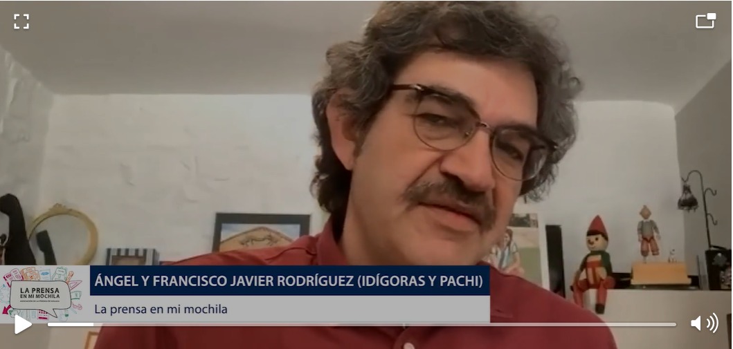 Los humoristas gráficos Ángel y Francisco Javier Rodríguez, Idígoras y Pachi, han intervenido hoy en un encuentro online con alumnos de una docena de centros educativos de la provincia que participan en el proyecto ‘La prensa en mi mochila’ que organiza la Asociación de la Prensa de Málaga. Los dibujantes han recalcado la complejidad que supone abordar con humor determinados temas como la Covid-19. “Cuando llevas más de 700 viñetas es más difícil porque hay que repensar todo lo que ya has hecho y eso es cansado”, han afirmado.