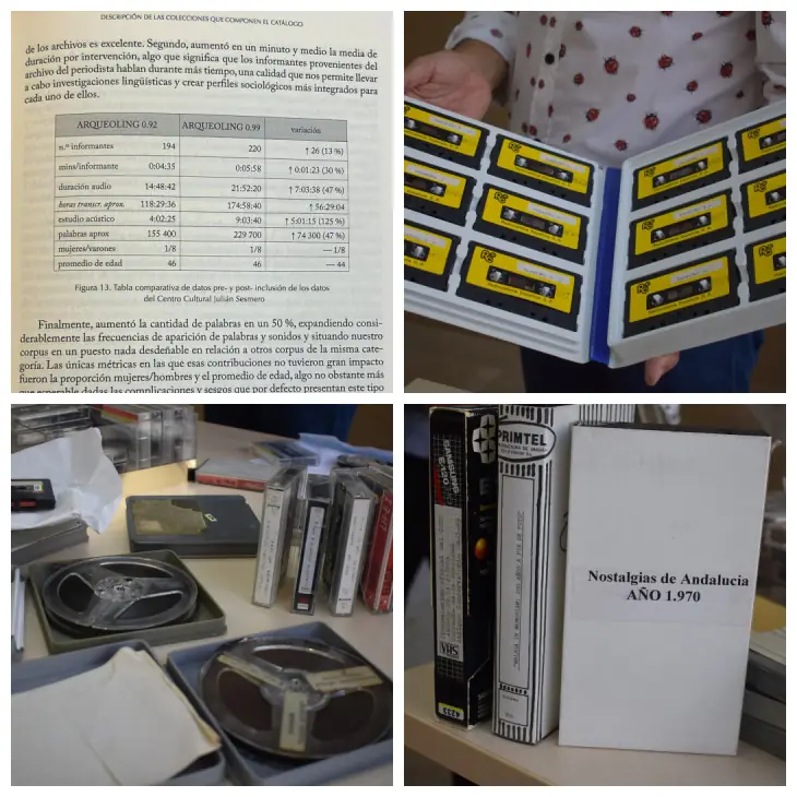 En efecto, el profesor de la UMA reconoce que estos archivos contienen testimonios que pueden catalogar como “tesoros”. Ávila recalca que dicho material sonoro resulta muy provechoso para los análisis y futuros resultados del estudio. Y es que, por razones de tecnología, no les ha sido difícil acceder a documentos posteriores a 1990, todo lo contrario que a los correspondientes a las décadas anteriores. El docente, en su reconocimiento por escrito, ha elogiado la disponibilidad y generosidad del Centro Sesmero a la hora de aportar los lotes, aunque indica que también les ha sido posible acceder a otras fuentes interesantes, como emisoras de medios de comunicación y emisoras de radio locales, fundaciones privadas y, sobre todo, personas a título particular, que han entregado incluso formatos tan curiosos como películas de Súper 8 o formatos poco conocidos, como el 9 y medio.