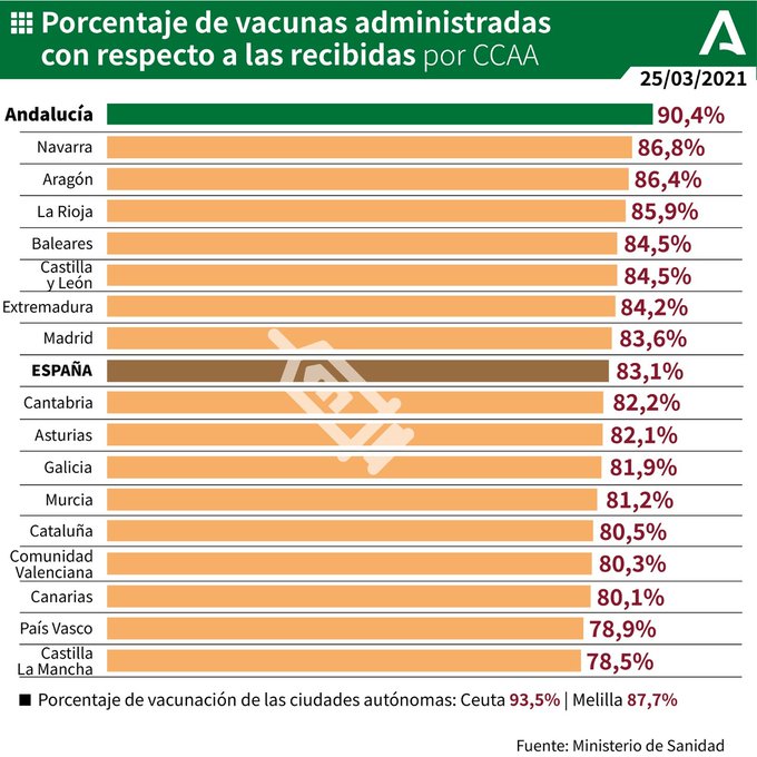 Vacunas COVID-19 administradas en Andalucía a 26 de marzo