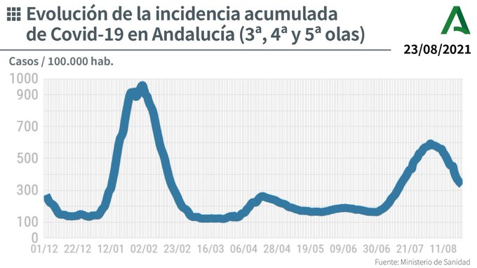 IA PDIA por 100.000 habitantes a 14 días en Andalucía: 328.85