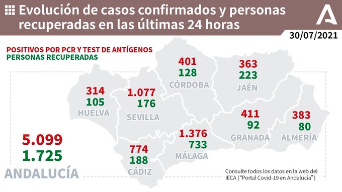 Actualización de datos Covid–19 Vacunas administradas en Andalucía a 29 de julio: