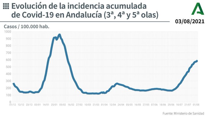 IA PDIA por 100.000 habitantes a 14 días en Andalucía: 586.04
