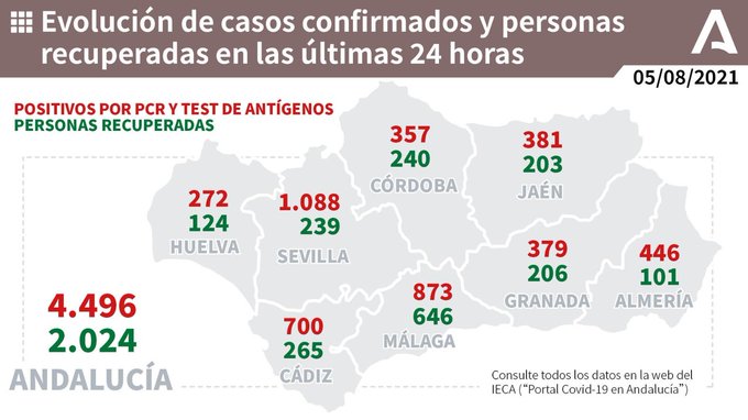 Actualización de datos Covid–19 Vacunas administradas en Andalucía a 4 de agosto: