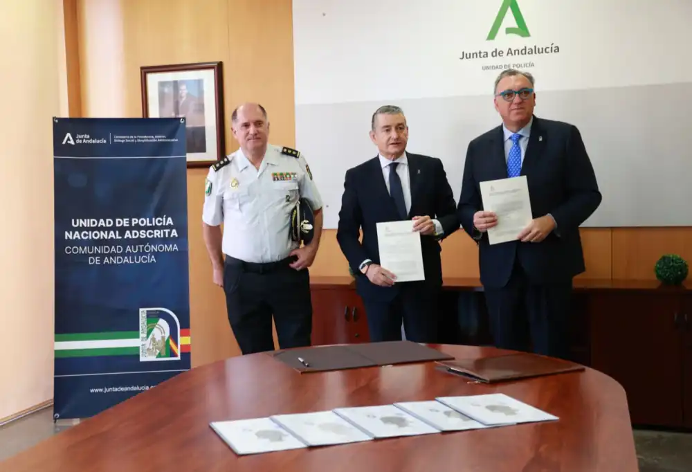 El consejero de la Presidencia, Interior, Diálogo Social y Simplificación Administrativa de la Junta de Andalucía, Antonio Sanz, y el consejero de Turismo y Andalucía Exterior, Arturo Bernal, han firmado un convenio de colaboración para poner en marcha el Grupo Titán (Trazabilidad e Inspección Turística de Andalucía) de la Unidad de Policía Nacional Adscrita a la Comunidad Autónoma de Andalucía (UPA), un cuerpo especializado que reforzará la seguridad jurídica, la calidad y la sostenibilidad del sector turístico en la comunidad.
