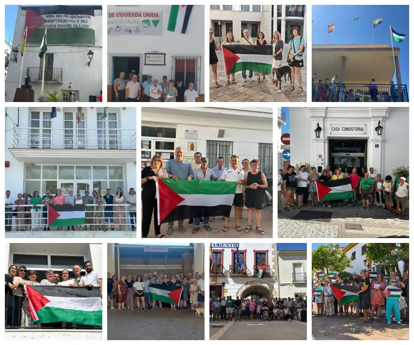 “Alameda, Almachar, Almargen, Álora, Ardales, Arenas, Benamargosa, Benalmádena, Casares, Humilladero, Monda, Periana, Rincón de la Victoria y Teba son algunos de los ayuntamientos en los que ya ondea la bandera palestina como gritó al unísono contra el atroz genocidio que el estado criminal de Israel está cometiendo en Palestina”.