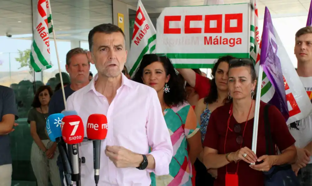 El coordinador federal de Izquierda Unida, Antonio Maiíllo, y la coordinadora provincial de IU Málaga y concejala portavoz adjunta en el Ayuntamiento de Málaga, Toni Morillas, han participado esta mañana en la concentración convocada por el Personal Docente e Investigador (PDI) de la Universidad de Málaga (UMA), en la que se reivindican mejoras en sus condiciones laborales ante un plan de ajuste impulsado por el gobierno andaluz del PP que supone “pérdida de empleo público y pérdida de calidad del servicio”.