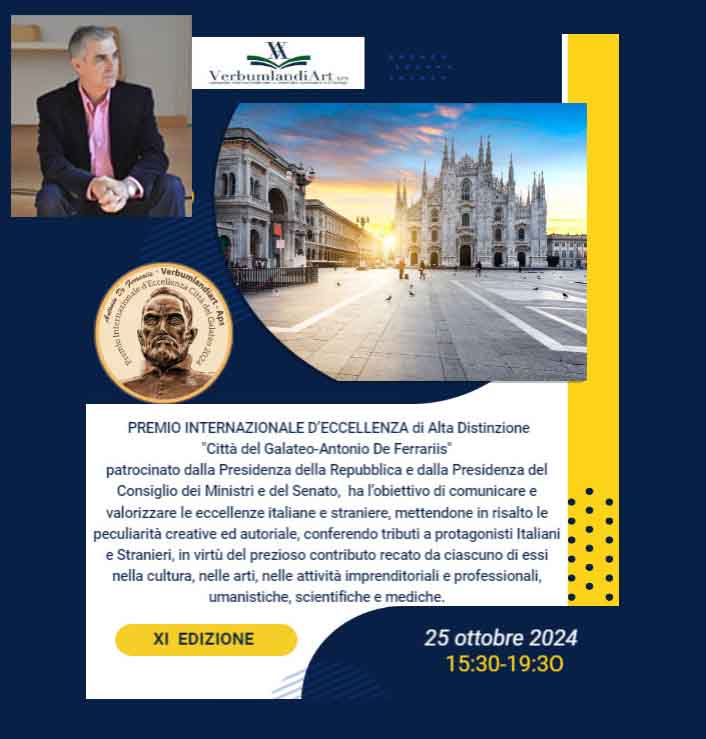 El Comité Científico del Premio Internacional «Città del Galateo-Antonio De Ferraris», XI Edición 2024, de la Associazione Verbumlandiart, presidida por la escritora e intelectual Regina Resta, acaba de conceder el PREMIO A LA EXCELENCIA PARA LA CULTURA Y EL COMPROMISO SOCIAL al escritor José Sarria, residente en Alhaurín de la Torre, consistente en la Medalla del Presidente de la República, con el Patrocinio Moral del Senado de la República (Cámara de Diputados). El Comité evaluador está compuesto por 30 prestigiosas personalidades del mundo de la cultura, las artes y las ciencias de Italia y de otros países europeos.