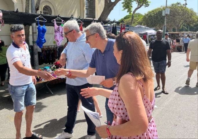 Aguilar , acompañado por el secretario general del Psoe en Torremolinos, Antonio Navarro y por la portavoz del Grupo Municipal Socialista, Maribel Tocón, ha hablado en un reparto del mercadillo del municipio de la situación que en materia social y en ayudas de dependencia ha dejado Moreno Bonilla en Andalucía.