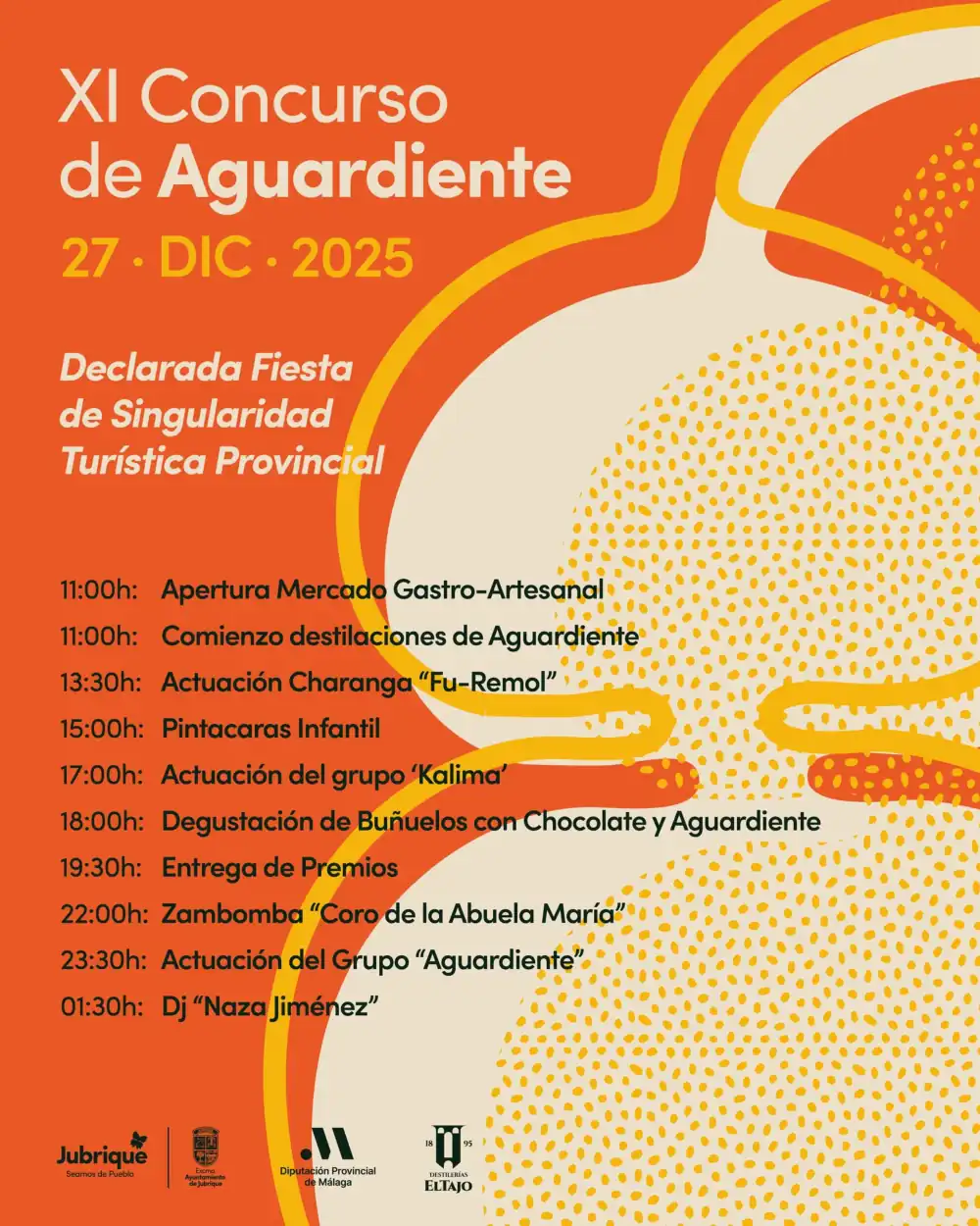 El municipio de Jubrique despide 2025 con una nueva edición de su tradicional Concurso de Aguardiente que se celebrará el 27 de diciembre. El certamen, que alcanza su XI edición, cuenta con el apoyo de la Diputación de Málaga y está declarado Fiesta de Singularidad Turística Provincial.