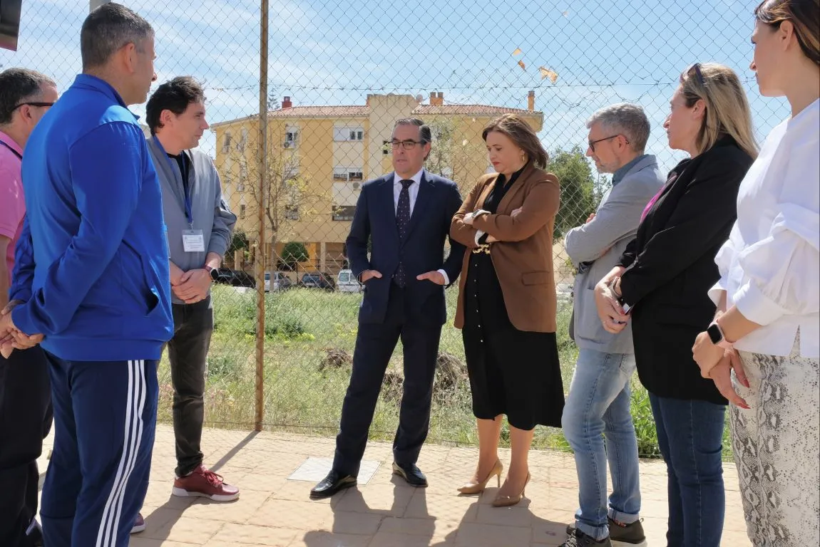 El delegado territorial de Desarrollo Educativo y Formación Profesional y de Universidad, Investigación e Innovación en Málaga, Miguel Briones, ha visitado el comienzo de las obras de la última fase de la ampliación del Instituto de Enseñanza Secundaria (IES) Concha Méndez Cuesta del municipio de Torremolinos, que consistirá en la dotación de una nueva pista deportiva. A la visita han acompañado la alcaldesa de la localidad, Margarita del Cid, el concejal de Cultura, Educación y Juventud, Francisco García, la concejala de Recursos Europeos, María Heredia y el gerente provincial de la Agencia Pública Andaluza de Educación, José Labrador, la jefa del servicio de Planificación y Escolarización Educativa, Eva Sánchez, y miembros de la directiva del centro.
