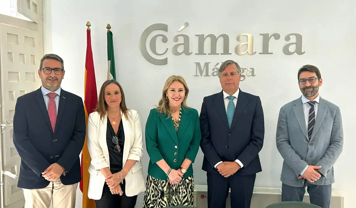La consejera de Economía, Hacienda y Fondos Europeos, Carolina, destaca los últimos datos récord de exportaciones en Málaga durante su visita a la sede de la Cámara de Comercio