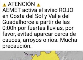 La Aemet ha activado el aviso rojo por fuertes precipitaciones en la comarca de Sol y Guadalhorce a partir de la medianoche