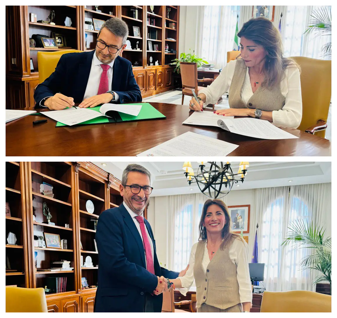 El delegado de Economía y la alcaldesa de Mijas suscriben el documento para el futuro IES Veleta Carmona