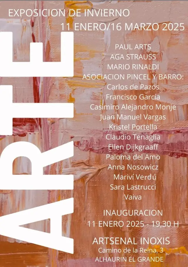 La Asociación Cultural Amigos de las Bellas Artes Pincel y Barro 04 invita a todos los amantes del arte a la inauguración de su próxima exposición colectiva, que se celebrará el sábado 11 de enero de 2025, a las 19:30 horas, en la prestigiosa galería Artsenal Inoxis, situada en el Camino de la Reina, 3, en Alhaurín el Grande.