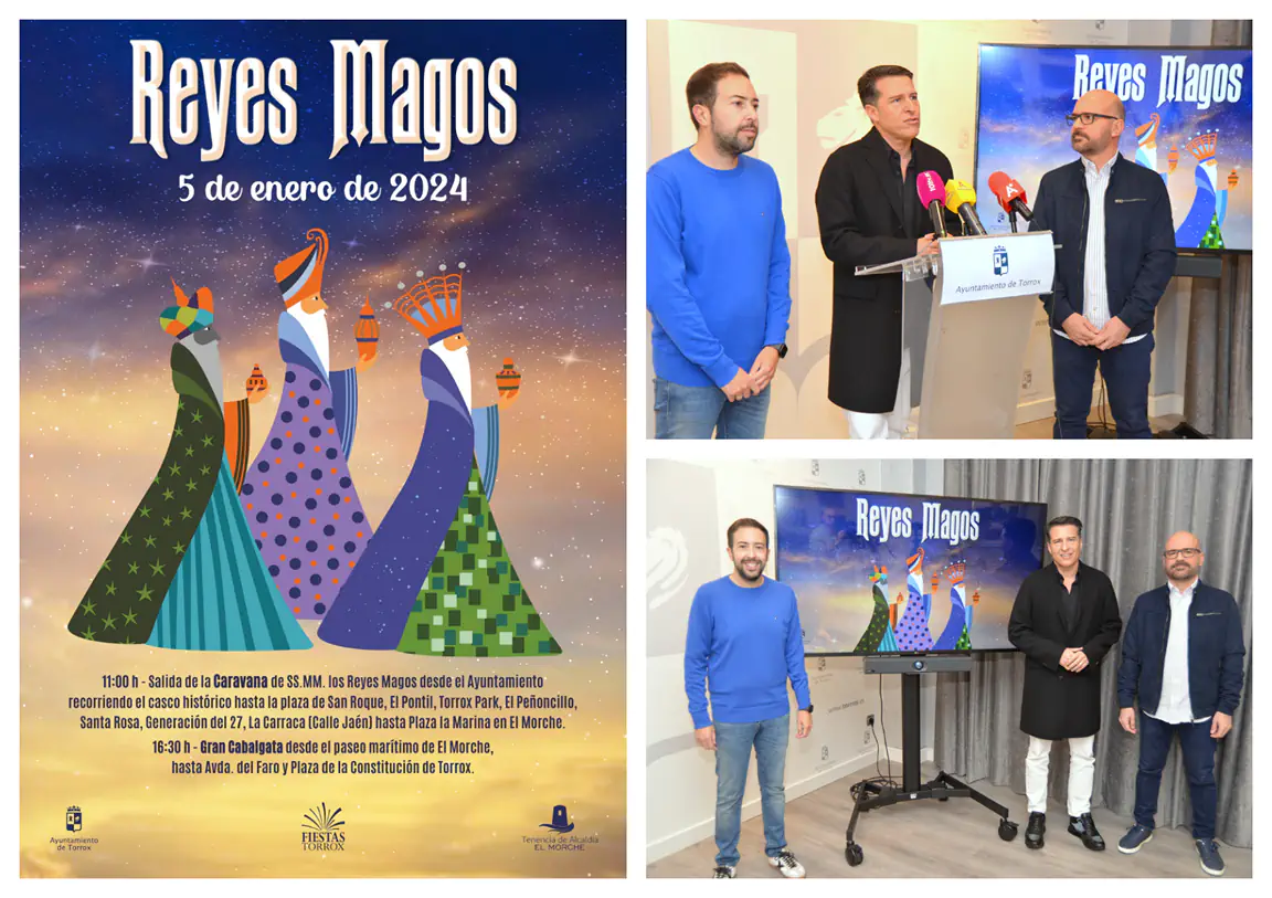 La cabalgata de Sus Majestades los Reyes Magos de Oriente en Torrox recorrerá este viernes 5 de enero más de ocho kilómetros del término municipal y repartirá tres toneladas de caramelos, una más que en 2023. Así lo ha dado a conocer el alcalde de Torrox, Óscar Medina, acompañado por el concejal de Fiestas, José Luis Ruiz, y el edil de Tradiciones Populares, Salvador Escudero. Será una cabalgata «llena de sorpresas y novedades» en las que también se lanzarán más de 10.000 regalos y 5.000 bolsas de aperitivos durante el desfile que comenzará en el paseo marítimo de El Morche y concluirá en la plaza de la Constitución de Torrox.