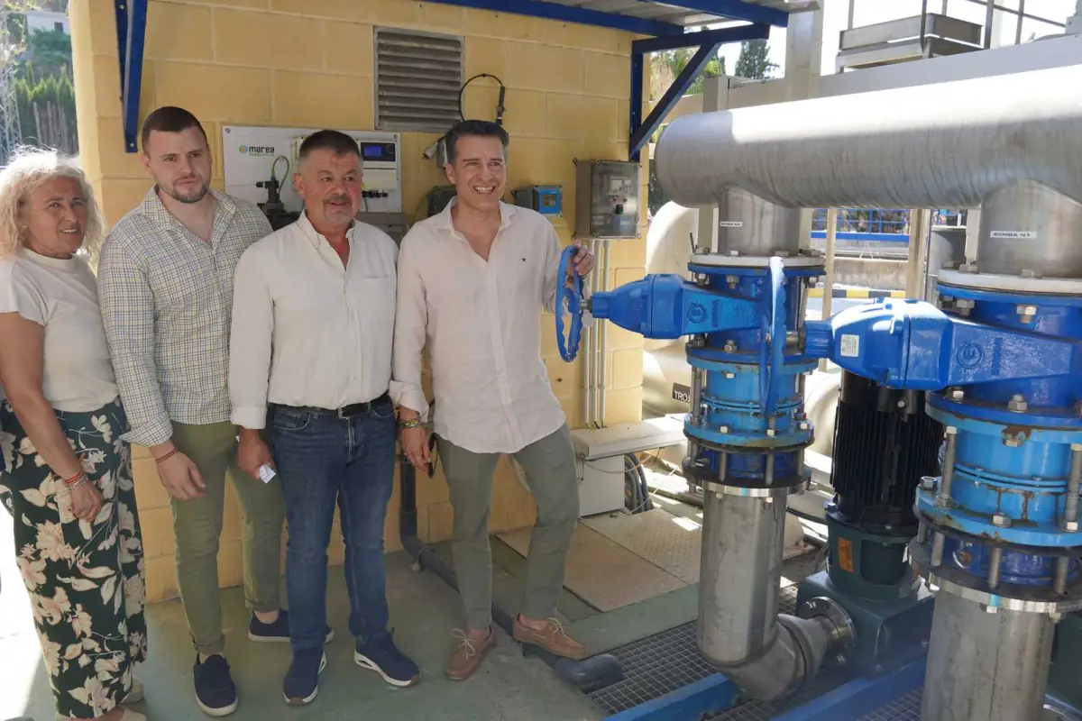 Las cinco comunidades de regantes de Torrox podrán aprovechar íntegramente los 1,3 hm3 de aguas regeneradas de las depuradoras IARA y Manzano tras la instalación de una nueva estación de bombeo que permite comunicar ambas infraestructuras hídricas, permitiendo el vertido cero y que no se tire ningún hectómetro cubico al mar. Así lo han anunciado este martes el alcalde de Torrox, Óscar Medina, el presidente de la Empresa Pública de Aguas y Saneamiento de la Axarquía (Axaragua), Jorge Martín, y el consejero delegado, Daniel Cívico, quienes han estado acompañados por la concejala de Medio Ambiente, Ana Pérez, y representantes de las comunidades de regantes del municipio y la Axarquía.