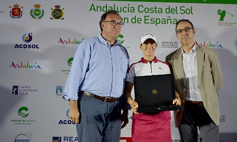 Turismo Costa del Sol ha entregado un reconocimiento a una de sus mejores embajadoras del destino en materia de golf: la profesional de San Pedro de Alcántara Azahara Muñoz. El acto ha tenido lugar en el marco del Pro Am celebrado en las vísperas del Andalucía Costa del Sol Open Femenino de Golf, una de las citas golfísticas de referencia de este año en el destino, que comienza este jueves en el Real Club de Golf Guadalmina.