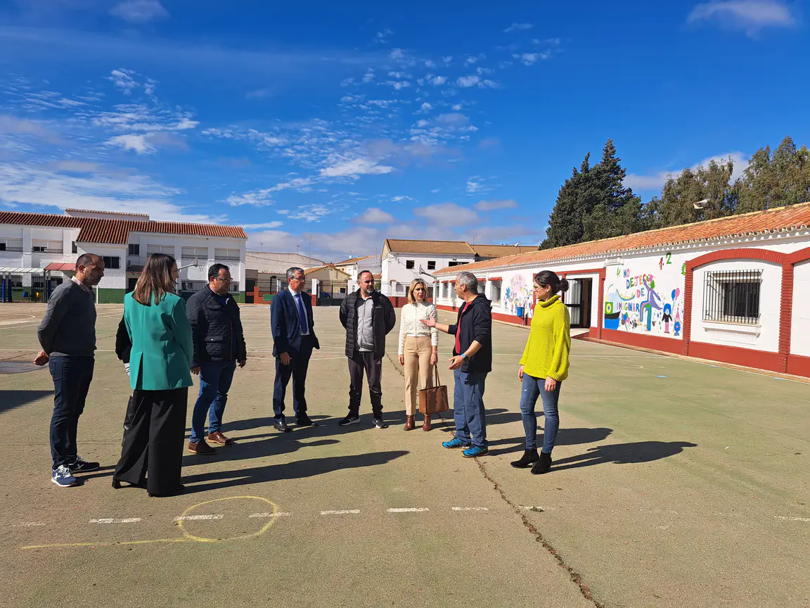 El presidente de la Diputación, Francisco Salado, ha visitado hoy junto al alcalde de la localidad, Miguel Ángel Pérez, la parcela donde se levantará este nuevo equipamiento deportivo, del que harán uso los alumnos y alumnas del colegio para sus clases de educación física y durante el recreo en los días de lluvia o de mucho calor. Hasta la fecha, solo contaban para ello con el espacio techado situado entre los dos edificios del colegio.