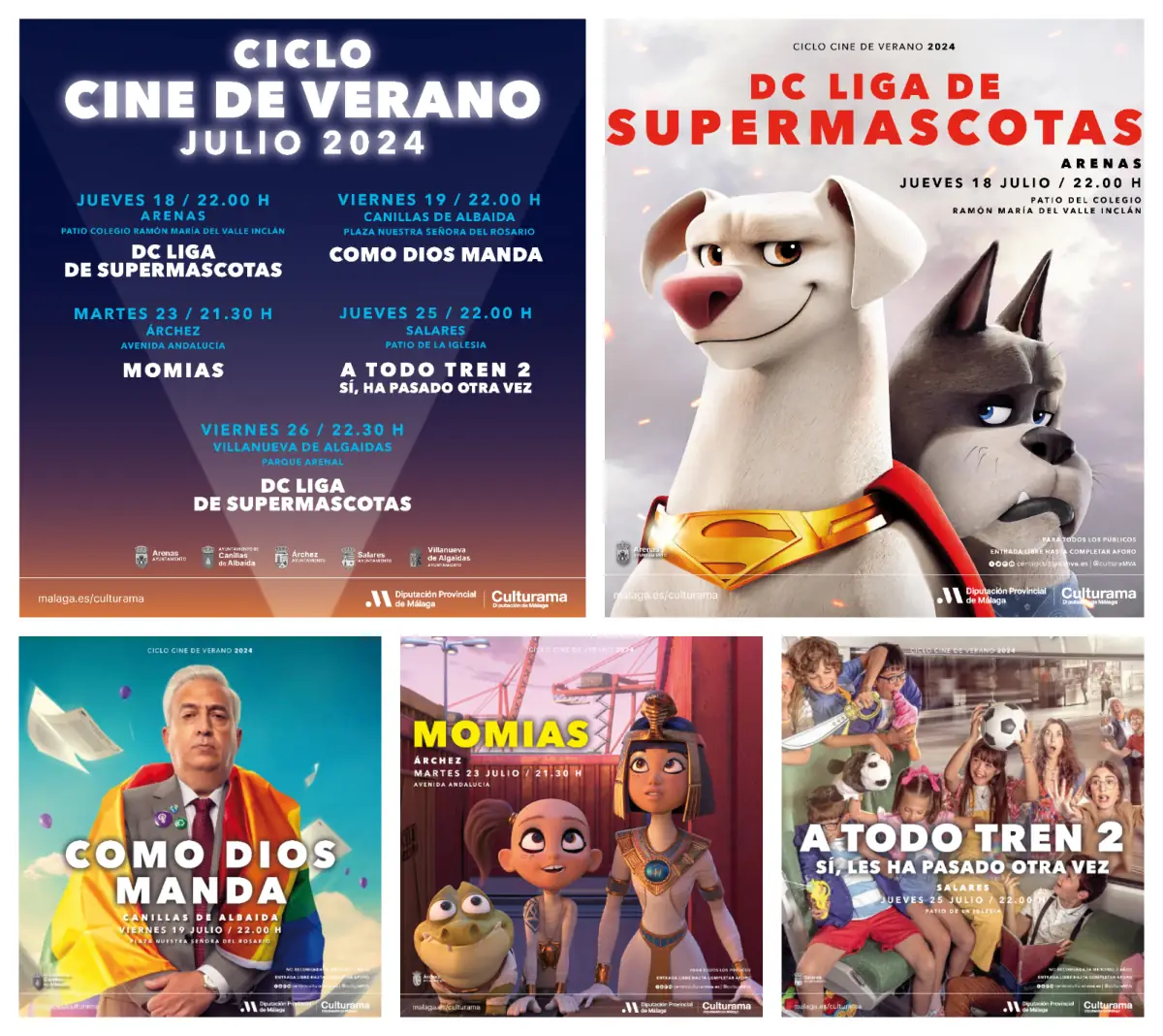 ‘Cine de Verano’ arrancará con la proyección de ‘DC Liga de Supermascotas’ el 18 de julio en Arenas, las siguientes cintas serán ‘Como Dios manda’ en Canillas de Albaida (19 de julio), ‘Momias’ en Árchez (23 de julio); ‘A todo tren 2. Sí, les ha pasado otra vez’ en Salares (25 de julio); y ‘DC Liga de Supermascotas’ en Villanueva de Algaidas (26 de julio)