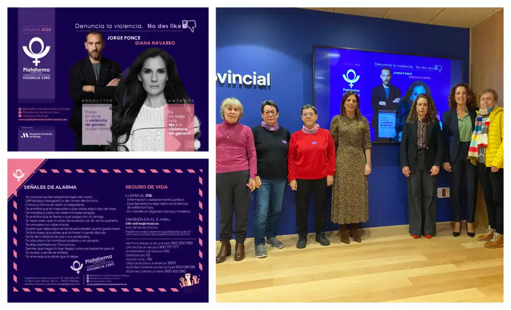 La Diputación de Málaga impulsa la campaña ‘Denuncia la violencia. No des like’ para concienciar a los jóvenes sobre la violencia contra la mujer en redes sociales. La acción, que contará con el productor Jorge Ponce y con la cantante Diana Navarro como embajadores, se enmarca en las actividades en torno al 25N, Día Internacional de la Eliminación de la Violencia contra la Mujer.