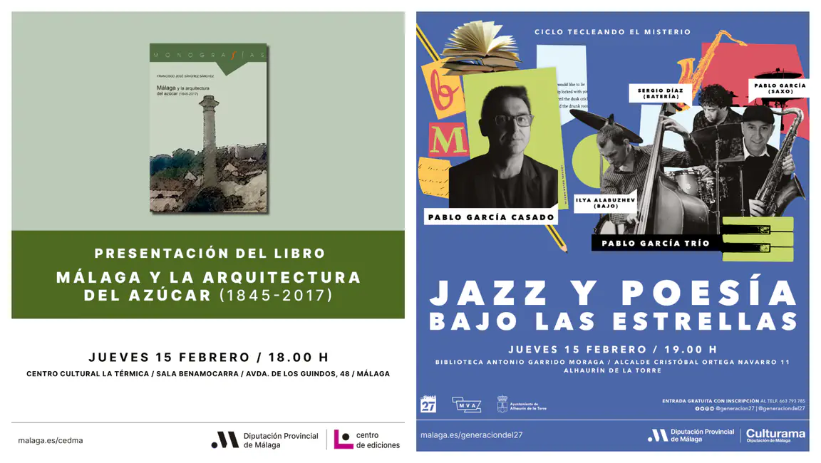 Mañana jueves, 15 de febrero, la Diputación de Málaga programa dos actividades culturales que aúnan música, poesía, arquitectura e historia de Málaga.