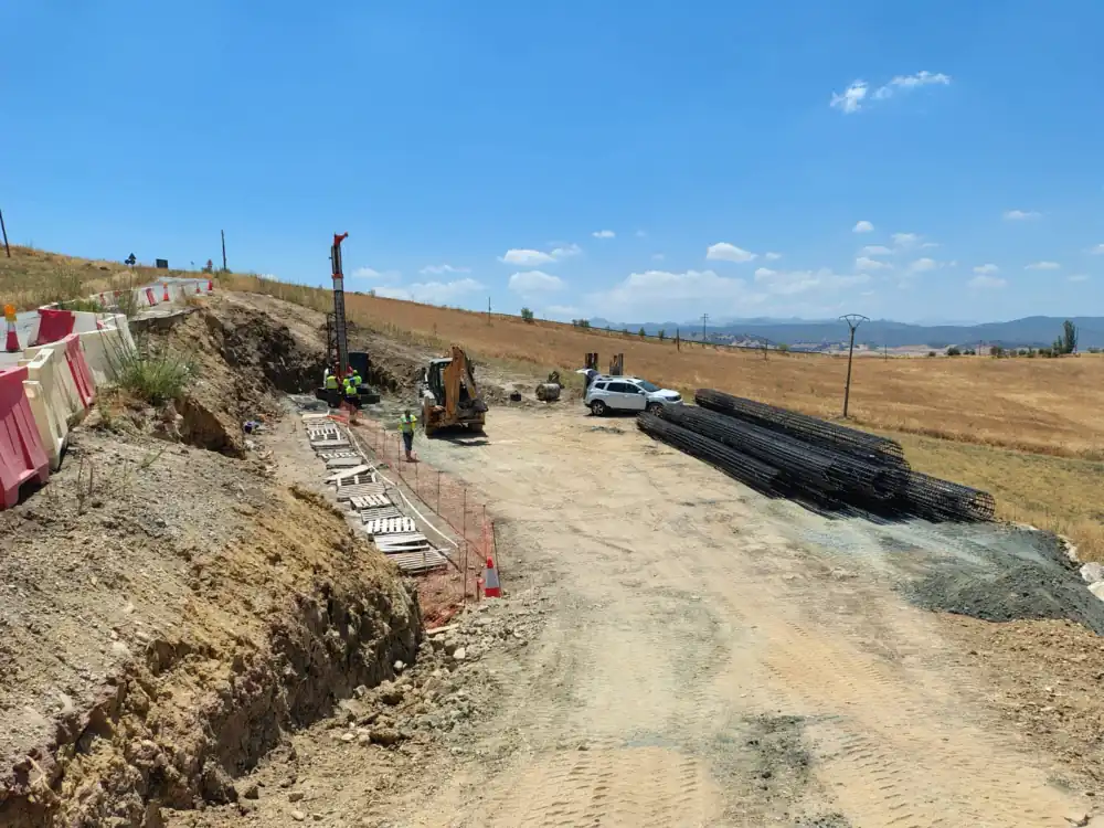 Entre cada uno de los pilotes se ejecutarán pilotes de hormigón en masa de 4 metros de profundidad que impidan el paso de material entre ellos. Posteriormente se culminarán los trabajos con el paquete de firme, compuesto por una capa de suelo seleccionado de 60 cm de espesor, 30 cm de zahorra artificial y dos capas de mezcla bituminosa.