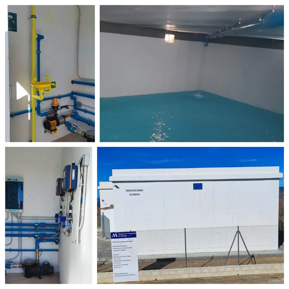 Este nuevo depósito tiene una capacidad de 1.000 metros cúbicos de agua potable para uso humano, con dos vasos independientes de 500 metros cúbicos. Desde este nuevo aljibe se abastecerá a los depósitos reguladores de los diseminados de Almogía y Casabermeja.