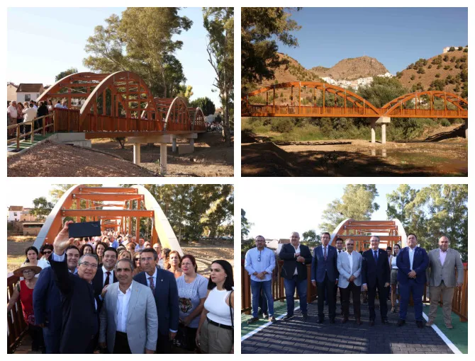 La primera actuación del Corredor Verde del Guadalhorce ya es una realidad. El presidente de la Diputación de Málaga, Francisco Salado, ha inaugurado, junto al alcalde de Álora, Francisco Martínez, un puente peatonal de madera que une las barriadas aloreñas de la Estación y de El Puente, financiado por la Diputación, que transfirió 800.000 euros al Ayuntamiento de Álora.
