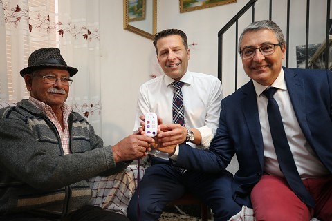 El presidente de la Diputación, Francisco Salado, junto al alcalde de Torrox, Óscar Medina, ha visitado hoy el hogar de uno de los usuarios, Fernando Tomés de 78 años del municipio de Torrox, que al igual que el resto de las personas beneficiarias de este proyecto cuenta con su sistema instalado en casa desde el pasado mes de diciembre.