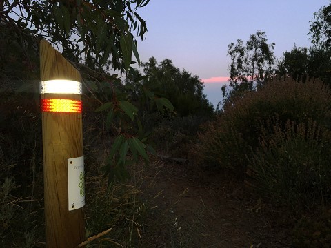 La Diputación de Málaga ha colocado aros reflectantes en las balizas de señalización de la Gran Senda de Málaga para facilitar que puedan realizarse recorridos nocturnos o en horas de poca luz solar. Esta mejora se ha realizado en los más de 650 kilómetros de las 35 etapas que forman el GR-249, que recorre de forma circular toda la provincia.