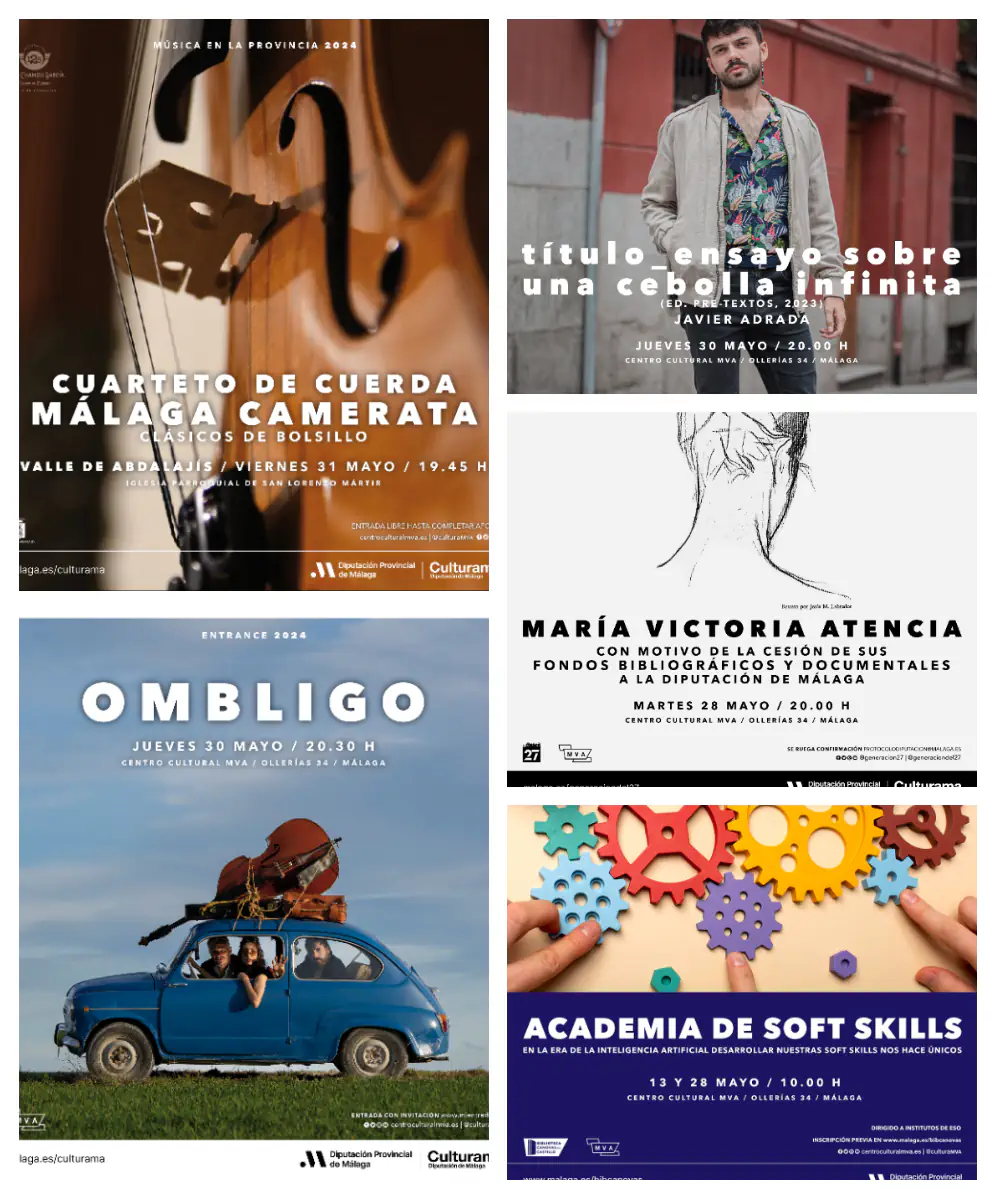 La Diputación de Málaga propone esta semana un variado programa de actividades culturales en el centro MVA y en la provincia con conciertos, talleres, presentaciones literarias y un homenaje a María Victoria Atencia.