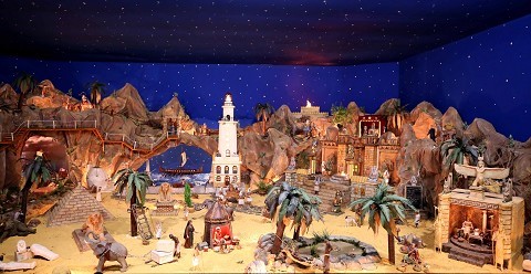 El belén cuenta con una extensión de 220 metros cuadrados y está compuesto por 1.050 figuras y 10.200 miniaturas, aproximadamente. Este año se han incluido siete figuras de 21 cm y 200 miniaturas más. Las figuras son de barro, elaboradas de forma artesanal con vestimenta de tela natural, gracias al trabajo de expertos como Ángela Tripi, Galán Maestros Belenistas o Ramírez.
