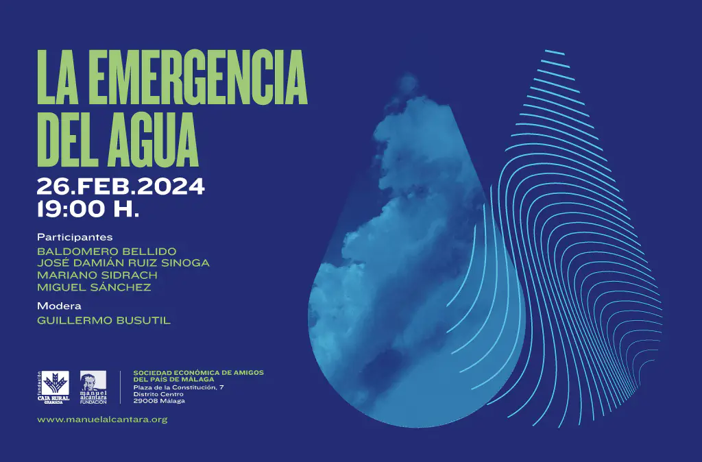 La Fundación Manuel Alcántara celebrará el próximo lunes 26 de febrero la mesa redonda ‘La emergencia del agua’, con el patrocinio de la Fundación Caja Rural Granada. El evento reunirá a destacados expertos y agentes sociales relacionados para abordar la crisis del agua en Andalucía y buscar soluciones con un enfoque integral.