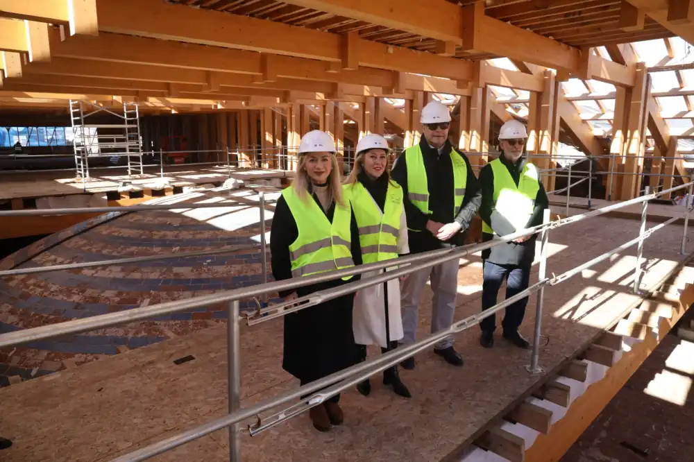 La consejera de Economía, Hacienda, Fondos Europeos y Diálogo Social, Carolina España, y la consejera de Cultura y Deporte, Patricia del Pozo, junto al obispo de Málaga, José Antonio Satué, y el deán de la catedral, José Manuel Ferrary, han visitado hoy las obras de las cubiertas de la Catedral de Málaga. Iniciada en abril de 2024 y con fecha de finalización prevista a finales de 2027, se trata de una “intervención integral que supone una de las actuaciones patrimoniales más destacadas de la historia de este valioso templo, joya del Renacimiento español”, han señalado las consejeras.