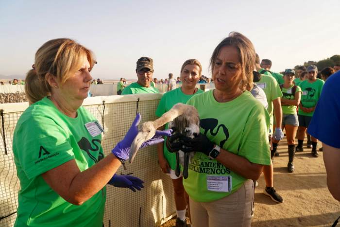La consejera ha subrayado que el anillamiento de este año “se ha podido llevar a cabo gracias a las excepcionales condiciones hídricas registradas en el mes de marzo, que superaron los 200 litros por metro cuadrado”. Estas precipitaciones permitieron que la laguna alcanzara un nivel de agua de 54 centímetros, generando un entorno óptimo para el asentamiento y cría de los flamencos. “El agua ha traído vida. Y esta vida ha florecido en forma de más de 33.900 parejas reproductoras, que también es la cifra más alta registrada desde que en 1984 se iniciara el seguimiento de la colonia”, ha explicado la titular de Sostenibilidad y Medio Ambiente.