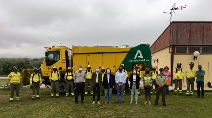 La viceconsejera de Agricultura, Ganadería, Pesca y Desarrollo Sostenible, Ana Corredera, ha visitado junto a la delegada del Gobierno andaluz, Patricia Navarro, el Centro de Defensa Forestal de Colmenar donde se ha presentado el dispositivo de este año del Plan Infoca, donde Corredera ha felicitado a los efectivos por su trabajo “durante todo el año, no sólo en los incendios y momentos más críticos del verano, sino siempre, dando ejemplo de capacidad y mejora constante”.