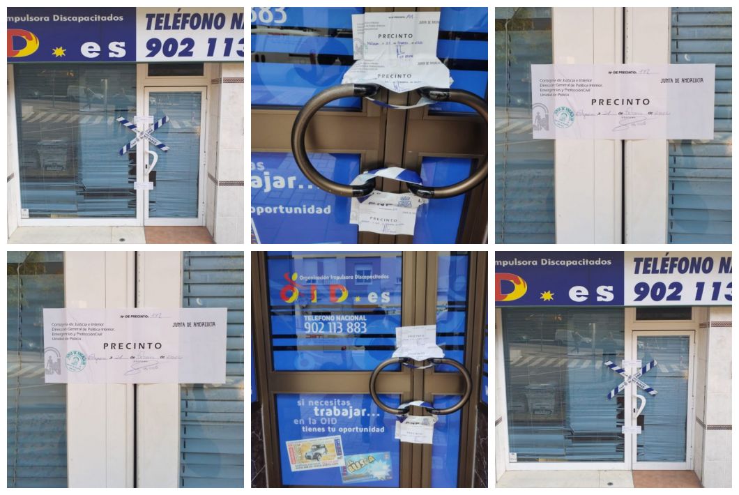 El Área de Juegos y Espectáculos Públicos de la Unidad de Policía Adscrita a la comunidad autónoma de Andalucía ha clausurado las dos sedes que la OID (Organización Impulsora de Discapacitados) tiene en la provincia de Málaga, concretamente en la capital y Estepona, en una actuación que se ha llevado a cabo en coordinación y colaboración entre la Consejería de la Presidencia, Administración Pública e Interior y la Consejería de Hacienda.