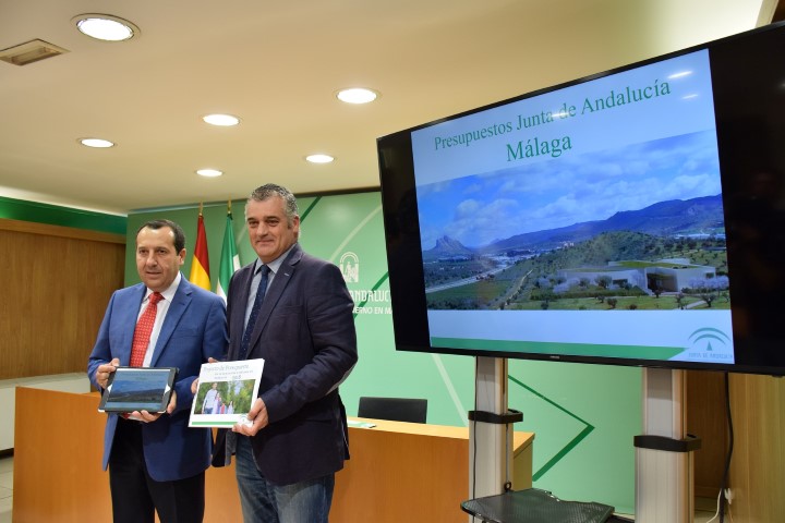 El consejero de Empleo, Empresa y Comercio, Javier Carnero, y el delegado del Gobierno andaluz en Málaga, José Luis Ruiz Espejo, han presentado hoy el proyecto de Ley del Presupuesto de la Comunidad Autónoma de Andalucía para 2018, que asciende a 34.759 millones de euros, y que tiene como prioridades que la recuperación económica se traslade a las familias con un incremento de rentas y una mejora de los servicios públicos que se prestan a la ciudadanía.