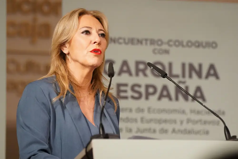La consejera de Economía, Hacienda y Fondos Europeos, Carolina España, anuncia en Málaga, en el marco de un foro organizado por Diario SUR, que dicha medida se aprobará el próximo lunes en Consejo de Gobierno