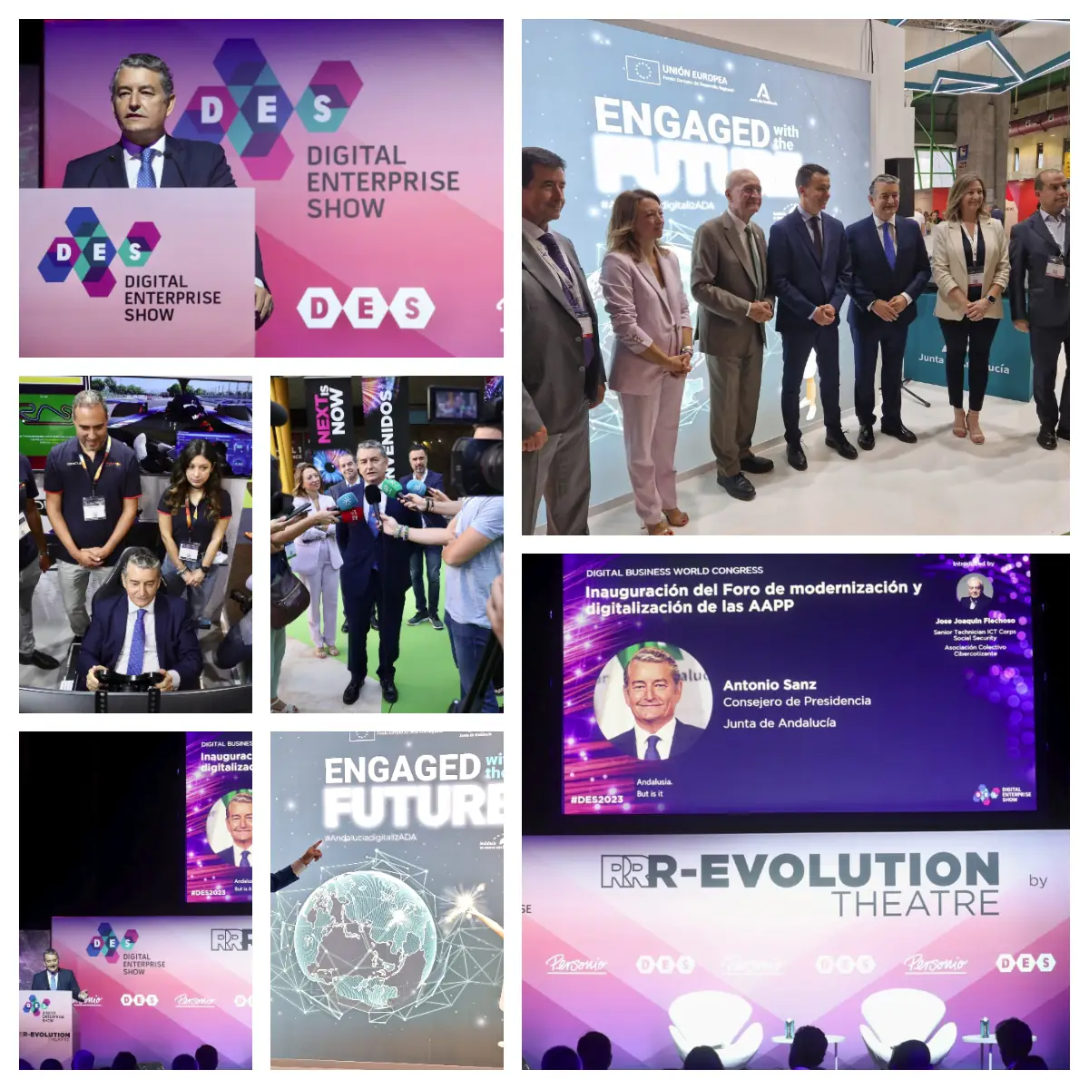 El consejero de la Presidencia, Interior, Diálogo Social y Simplificación Administrativa, Antonio Sanz, ha participado este miércoles en el Digital Enterprise Show (DES) en Málaga, donde ha hecho especial hincapié en la “coordinación, cooperación y colaboración entre administraciones para que lideren con nosotros la revolución digital que queremos hacer en Andalucía”.