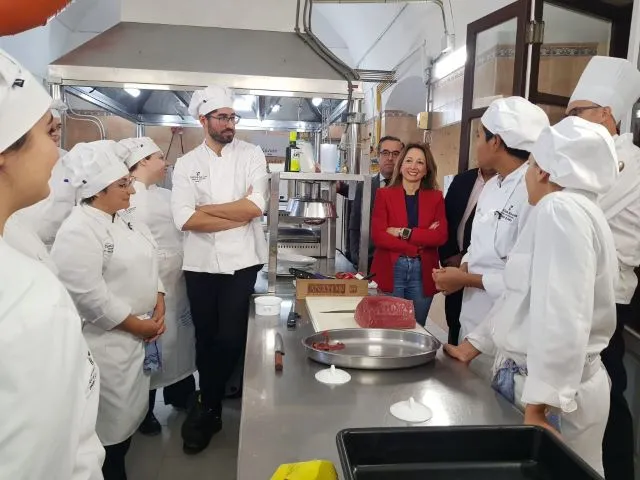 Acompañada por el delegado territorial de Desarrollo Educativo y Formación Profesional, Miguel Briones, y el equipo directivo del Instituto María Zambrano de Torre del Mar, que imparte el módulo de formación profesional de cocina, gastronomía y servicio de restauración en esta escuela, la delegada de la Junta ha subrayado “la apuesta del Gobierno de Juanma Moreno en los últimos cuatro años por la Formación Profesional que, como eje estratégico para una educación de calidad, ha experimentado, con 40.000 plazas más en Andalucía, el mayor incremento registrado en una legislatura en nuestra comunidad”.