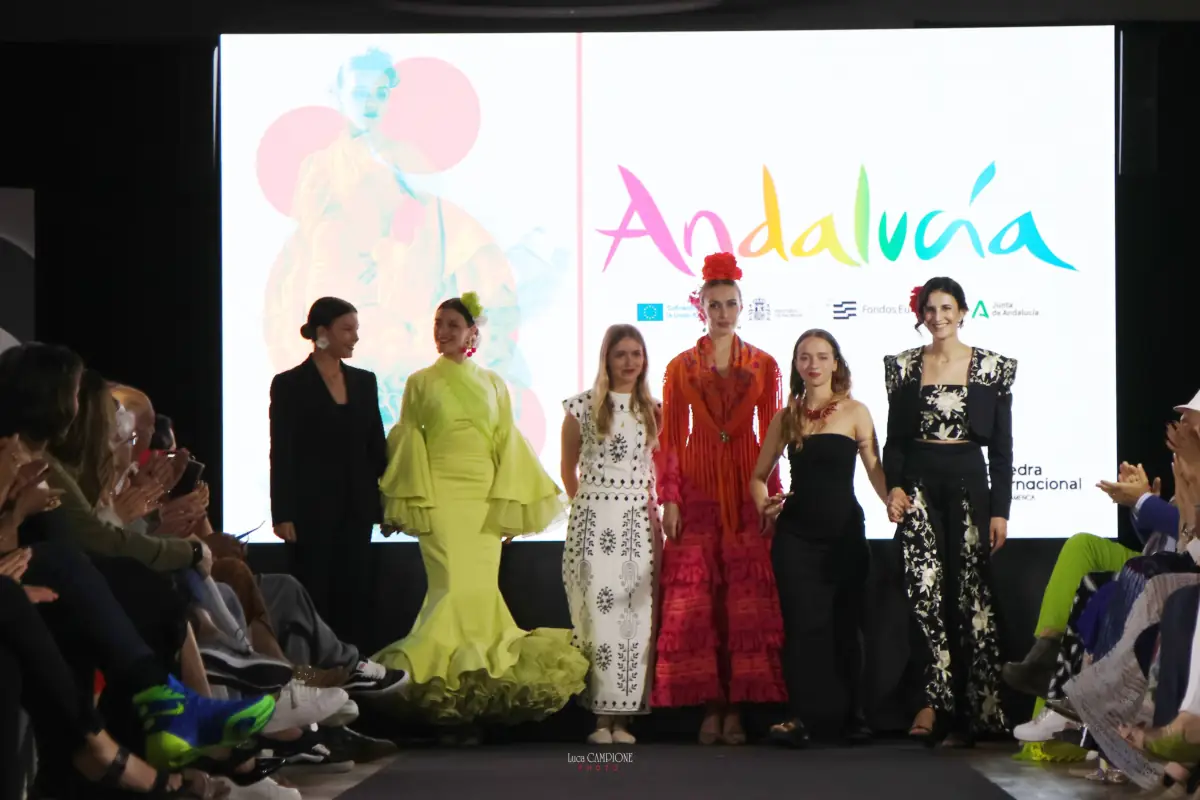 Las malagueñas Paula Sánchez y Marina Soudry, la granadina Teresa Ortiz y los sevillanos Rafael Cerrada, Ana López e Isabel Japón, deslumbraron con sus espectaculares colecciones de moda flamenca en el desfile “Andalucía” celebrado ayer en Italia, evento con el patrocinio de la Consejería de Turismo, Cultura y Deporte, cofinanciado con fondos europeos.