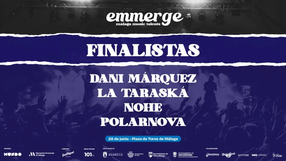 La música y el talento malagueño cobrará protagonismo el próximo sábado 28 de junio en la plaza de toros de La Malagueta, donde se celebrará la gran final de la primera edición del concurso Emmerge Málaga Music Talents. Un último escalón para los cuatro finalistas, Dani Márquez, La Taraská, Nohe y Polarnova, que han superado con éxito a más de cien propuestas musicales y que pretenden cerrar el círculo conquistando al jurado y al público.