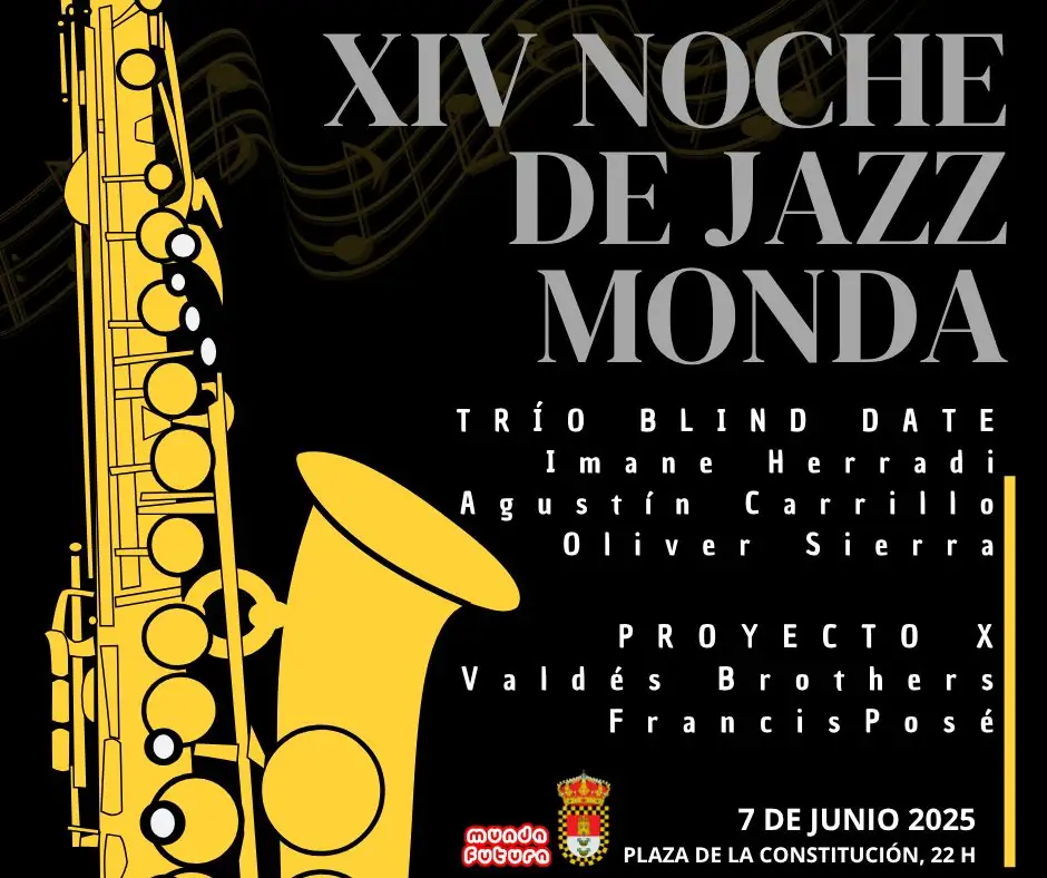 El Ayuntamiento de Monda anuncia la celebración de la 14ª edición de la Noche de Jazz, un evento cultural de gran relevancia en el calendario estival que tendrá lugar el próximo sábado 7 de junio a partir de las 22:00 horas en la Plaza de la Constitución.