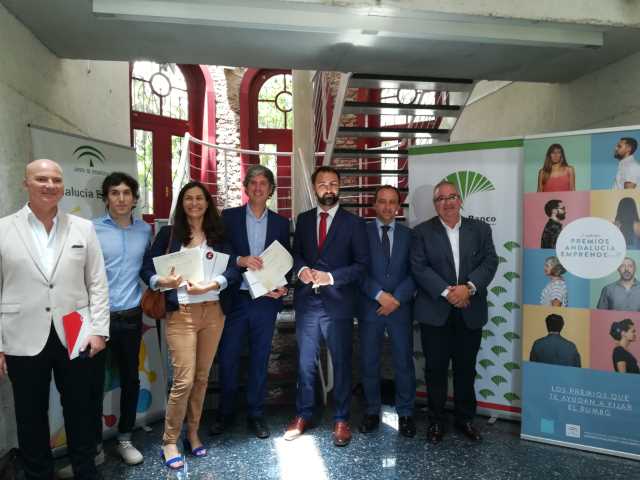 El delegado de Economía, Innovación, Ciencia y Empleo de Málaga, Mariano Ruiz Araujo y el director provincial de Andalucía Emprende, Gabriel Clavijo, han entregado este viernes los galardones de la quinta edición de los Premios Andalucía Emprende a “Predictiva” y a “Muuglu” empresas que pasarán ahora a la fase regional del concurso.