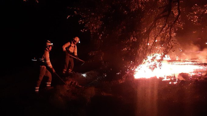 La lluvia que cae desde hace horas ha sido la mejor aliada del intenso y admirable trabajo de los retenes. Se activa el nivel 0. Ahora queda una fase compleja hasta su extinción.