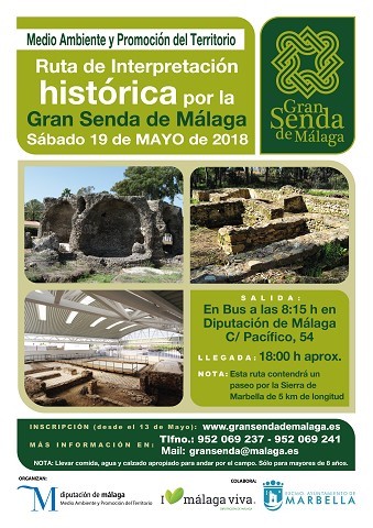 La Diputación de Málaga, a través de la delegación de Medio Ambiente y Promoción del Territorio, organiza el sábado próximo, 19 de mayo, una ruta de interpretación histórica en el entorno de tramos de la Gran Senda de Málaga y de la Senda Litoral en Marbella. En la zona costera, se visitarán los yacimientos arqueológicos de Las Bóvedas, la basílica paleocristiana Vega de Mar y la villa romana de Río Verde; y en la montaña, el entorno de las minas de plomo de Buenavista.