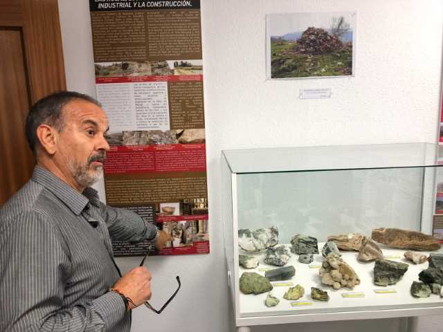 (Libres) Iván González, candidato a la alcaldía de Málaga, visita el rico patriomonio geológico que Juan Carlos Romero expone en un local del barrio de la Trinidad sin apenas ayuda municipal