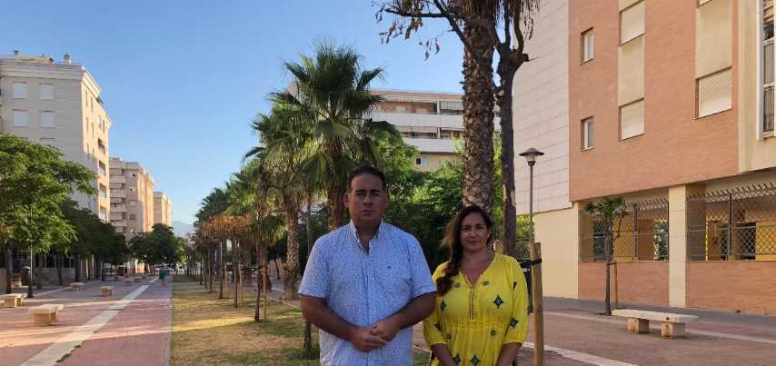 El candidato a la alcaldía de Málaga por LIBRES, Iván González, junto a la responsable de Atención a la Ciudadanía, María de la Torre, ha incidido en que la empresa concesionaria del mantenimiento de Parques y Jardines de los distritos 1, 2, 6 y 7, FCC, continúa incumpliendo de manera grave el pliego de condiciones del contrato con el Ayuntamiento de Málaga, por lo que las zonas verdes de esas partes de la capital están en pésimas condiciones, más secas que nunca.
